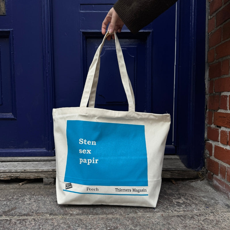 Denne mulepose er resultatet af et samarbejde mellem boghandlen Thiemers Magasin og Peech. Udgangspunktet er Thiemers Magasins ikoniske totebag - kendt for sit enkle layout og sit fine grafiske udtryk. Nu får den et nyt twist med citatet “sten, sex, papir”, der giver klassikeren et friskt, humoristisk og karakterfuldt løft.
